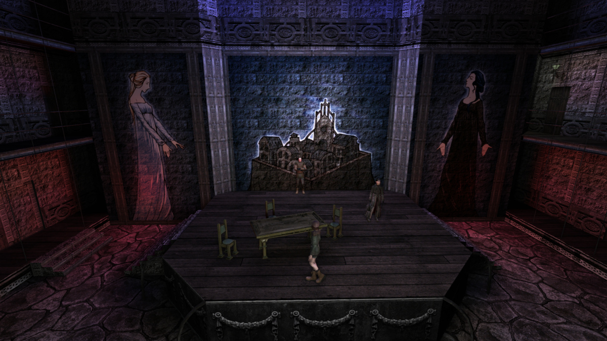 Obrazy 3, 4, 5, 6 i 7. Teatr, Egzekutor, Poświęcona (Odmieniec), Mark oraz ekran ładowania gry, Pathologic 2 (2019), Ice-Pick Lodge